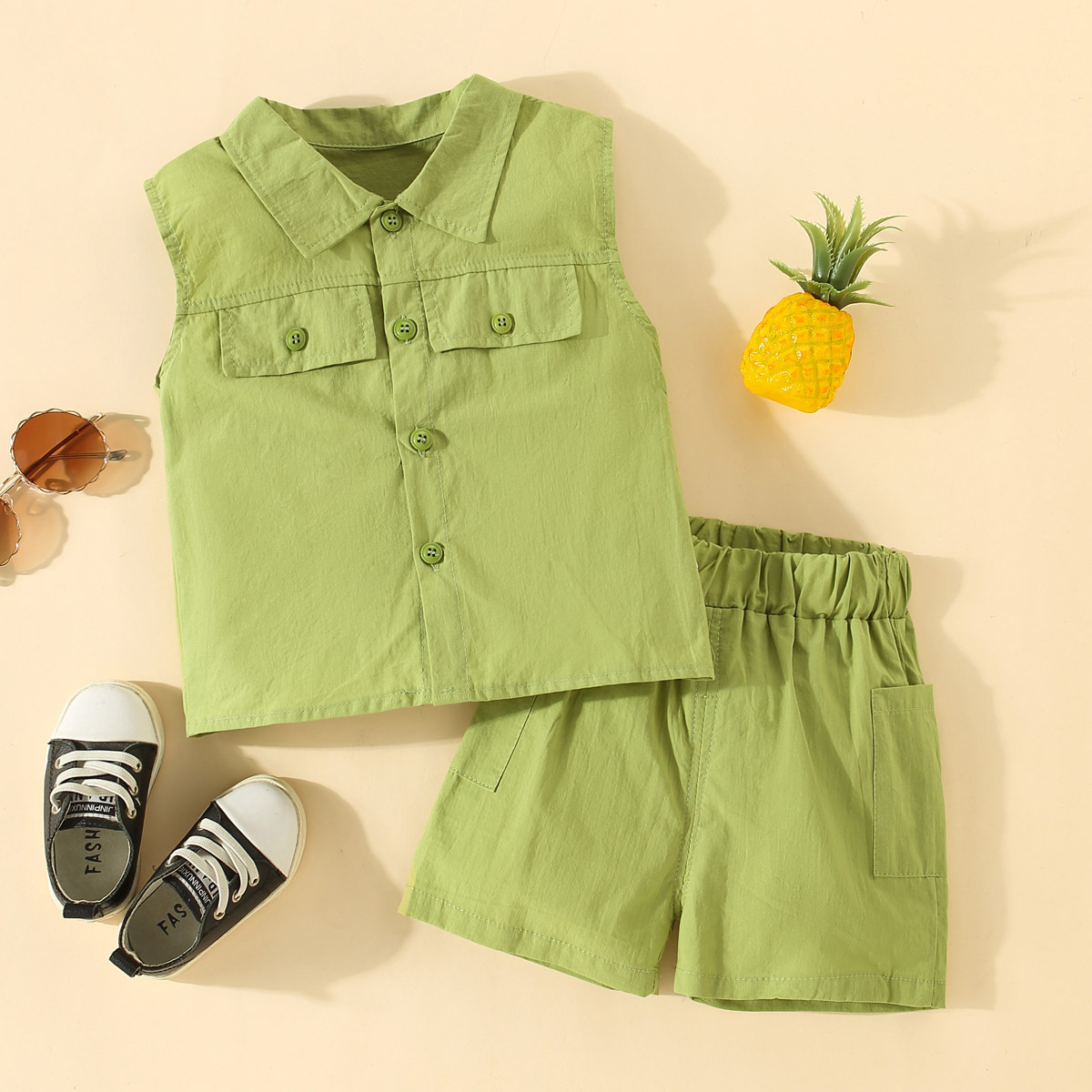 Toddler Girls Lapel Solid Single-breasted Top & Shorts Wholesale