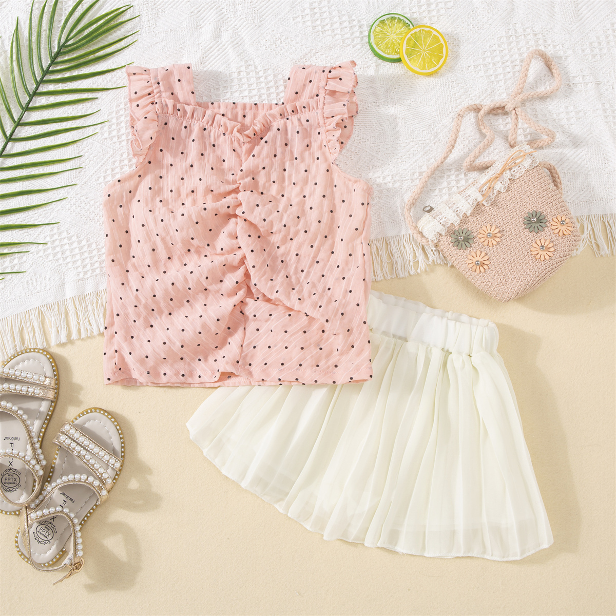 Toddler Girls Solid Wave Point Pleats Top & Skirt Wholesale