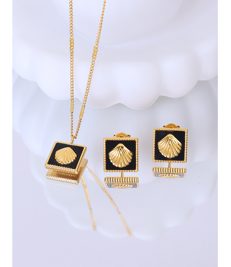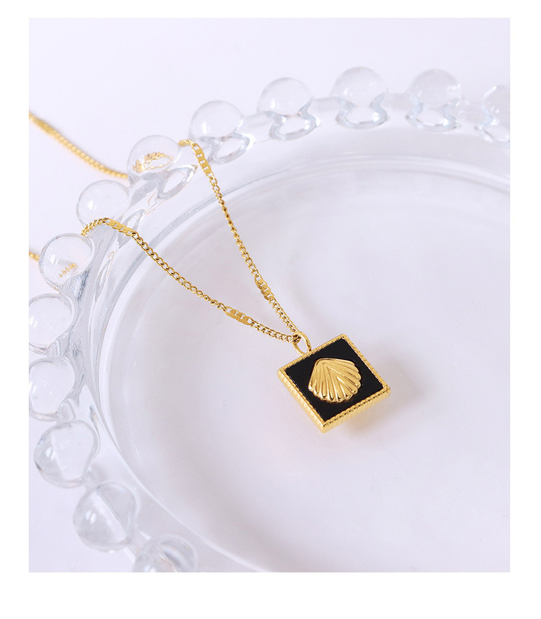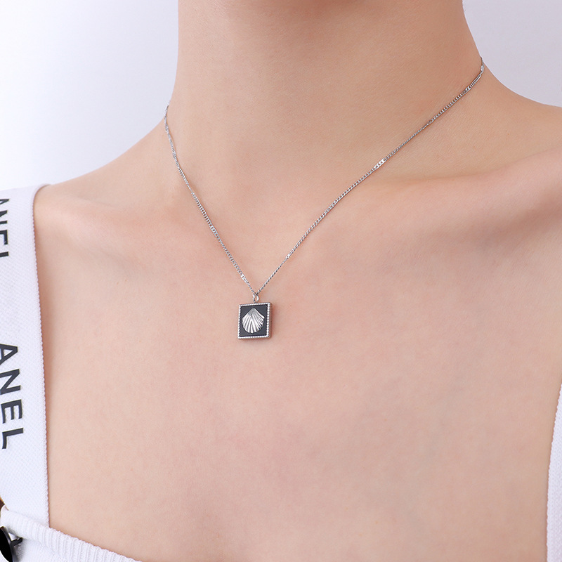 Vintage Style Black Square Seashell Pattern Pendant Necklace