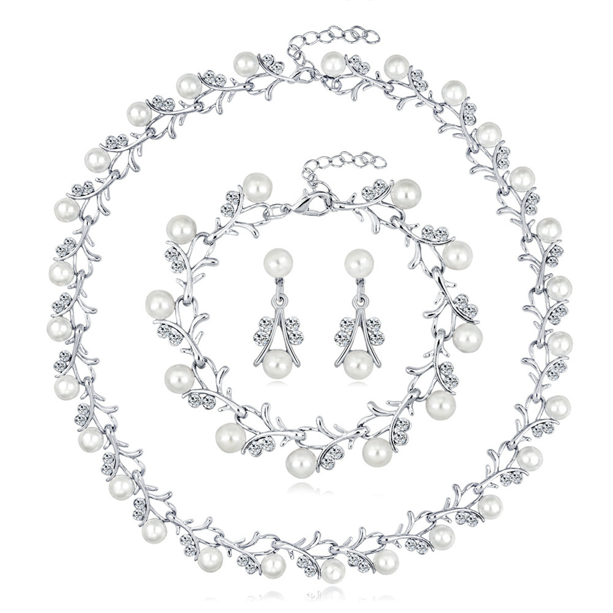 Women 3-Piece Pearl Rhinestone Decoration Jewelry Set Wholesale