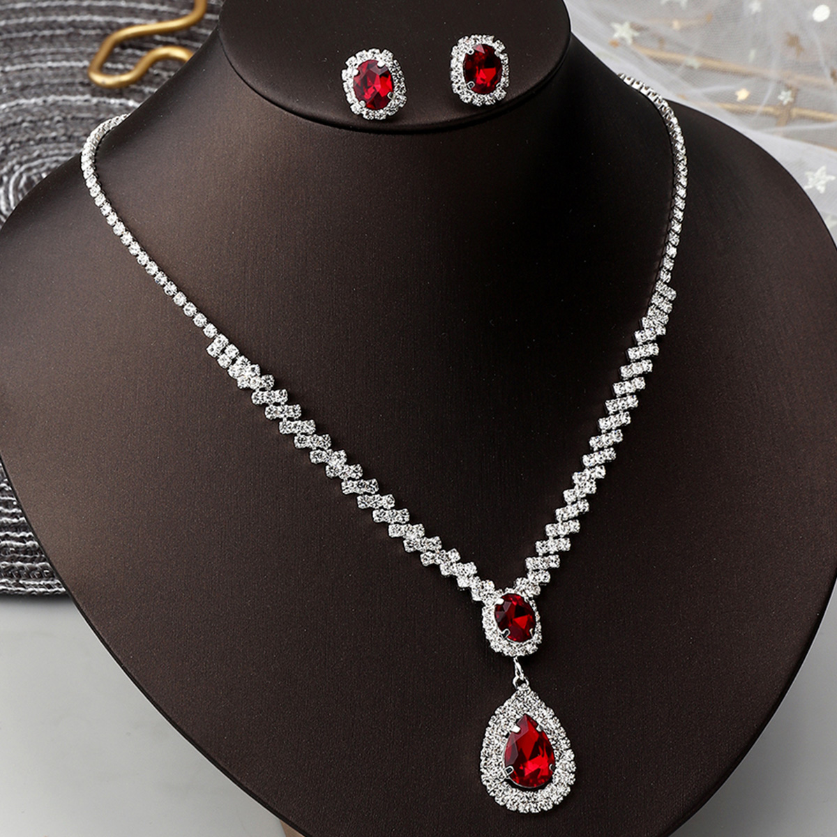 Women 3-Piece Rhinestone Gems Jewelry Set Wholesale