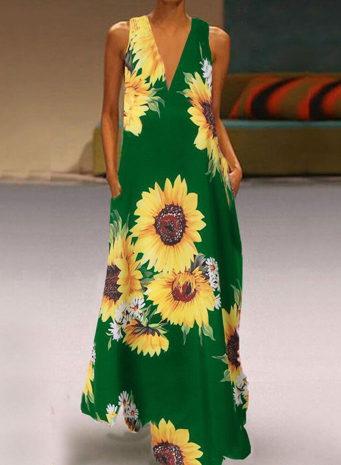 Women's Dress Maxi Sunflower Ribbed Tank Dress