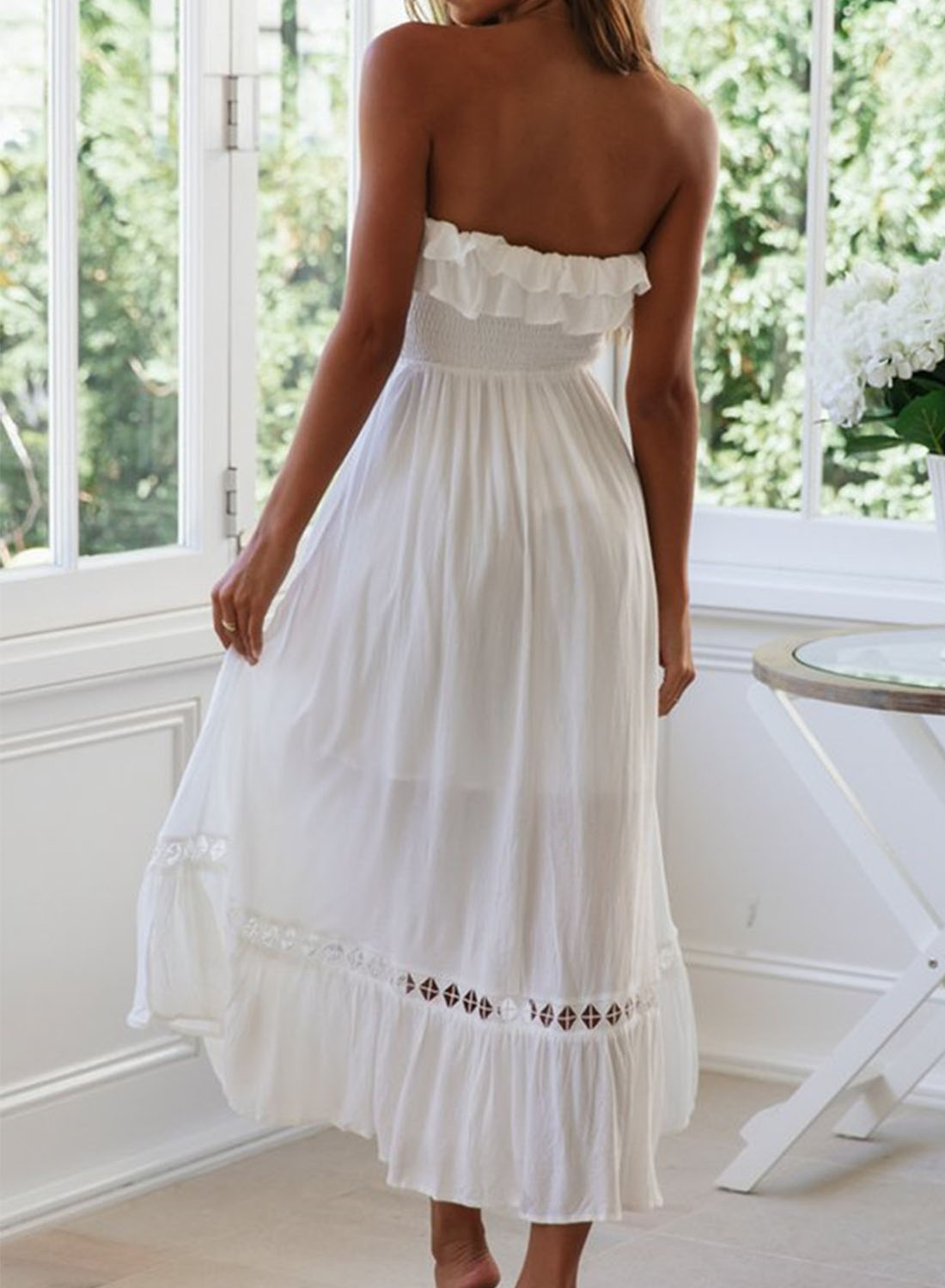 Women's Dress Solid Lace Ruffle Cold Shoulder Maxi Dress