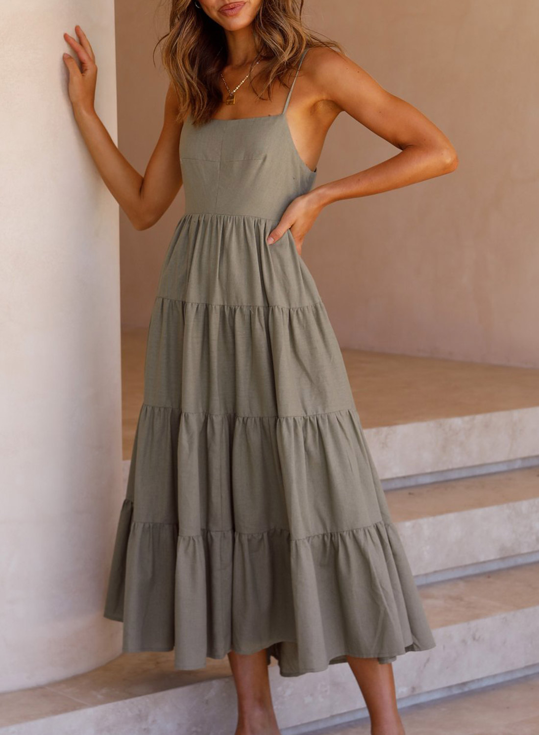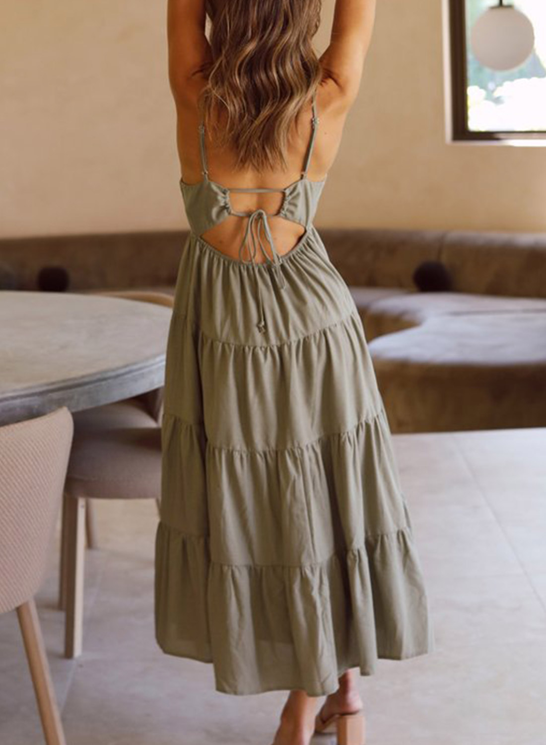 Women's Maxi Dress Ruched Solid Criss Cross Knot Back Cami Dress