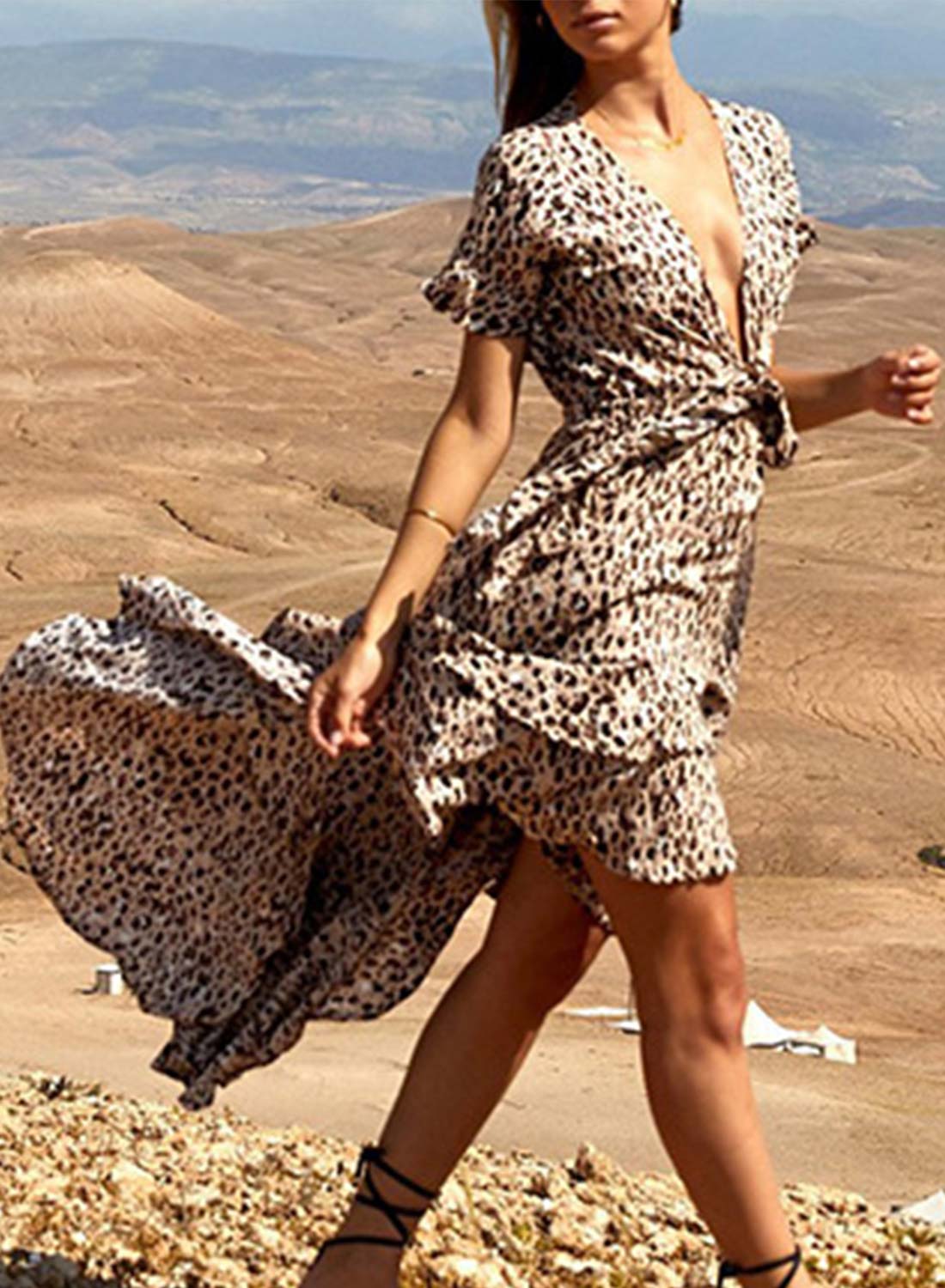 Women's Maxi Dresses Leopard Print Ruffled Trim Irregular Hem Dress