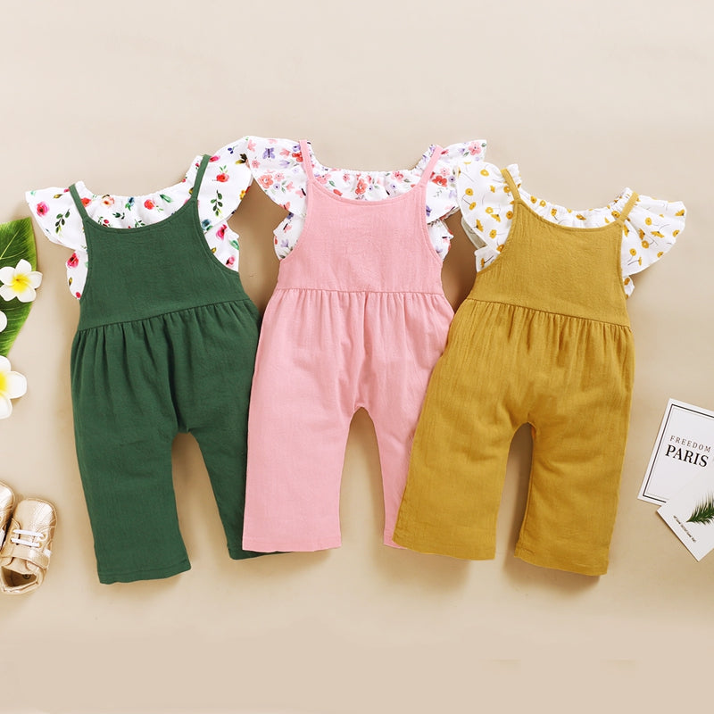 2-piece Floral Printed Blouse & Dungarees for Toddler Girl Wholesale