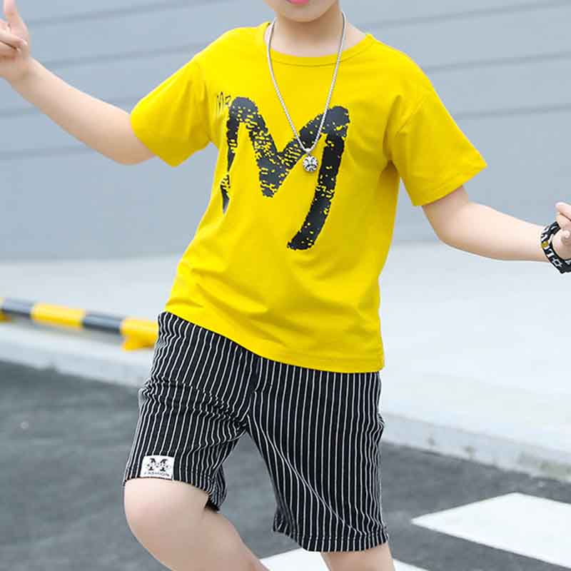 Boy Letter Pattern T-Shirt & Striped Shorts Wholesale