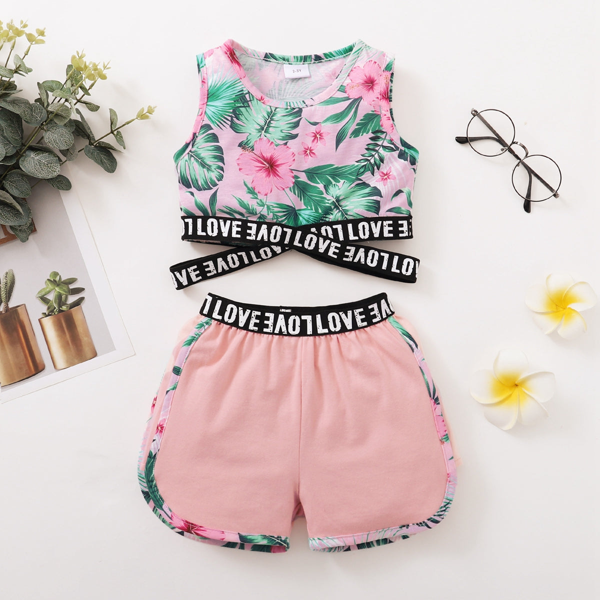Toddler Girls Cotton Letter Heart-shaped Top & Shorts Wholesale