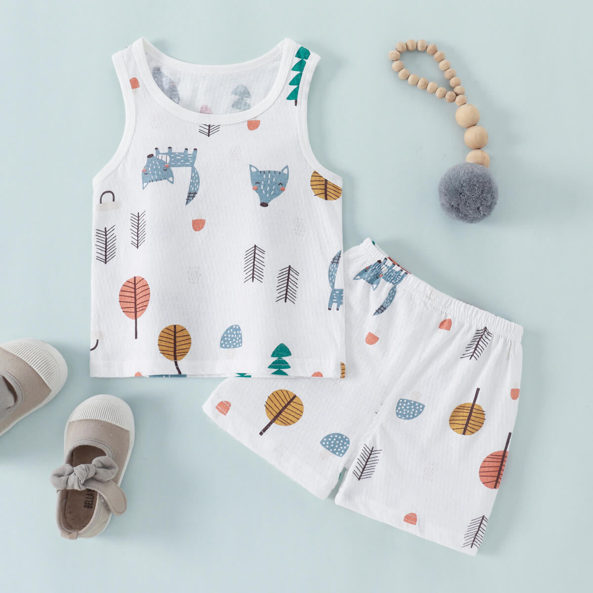 Toddler Boy Cotton Spandex Cartoon Animal Casual Tank Top And Shorts Two Piece Suit Wholesale