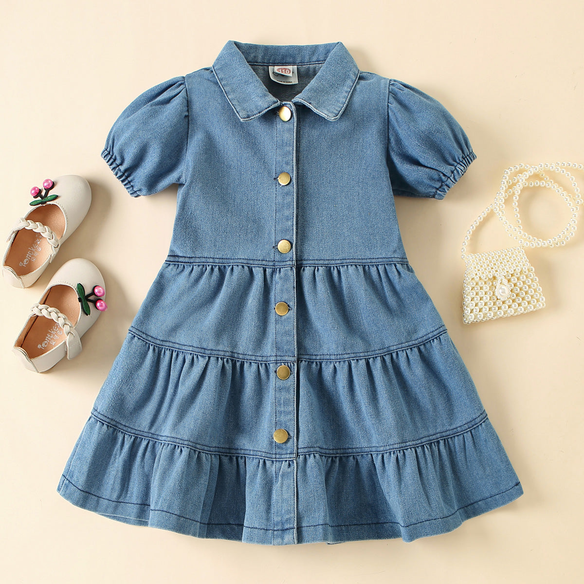 Toddler Girls Denim Basic Solid Splicing Dress Wholesale
