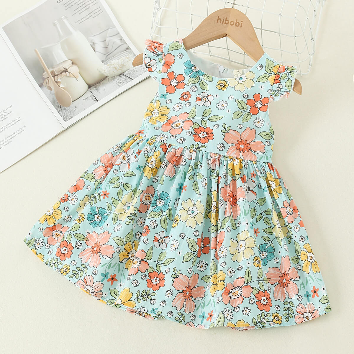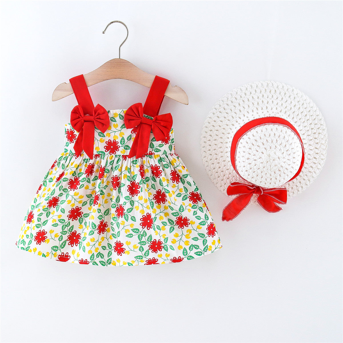 Toddler Girl Sweet Floral Pattern Dress & Hat Wholesale