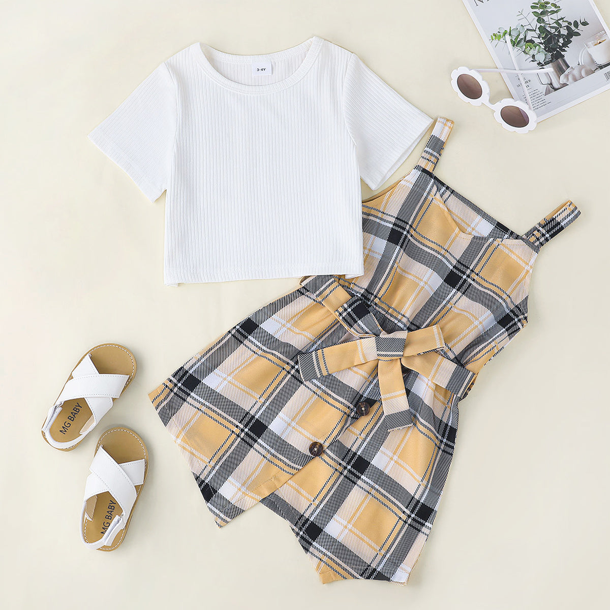 Toddler Girl Plaid Casual Cool Asymmetric Strap Dress & T-shirt Dress Set Wholesale