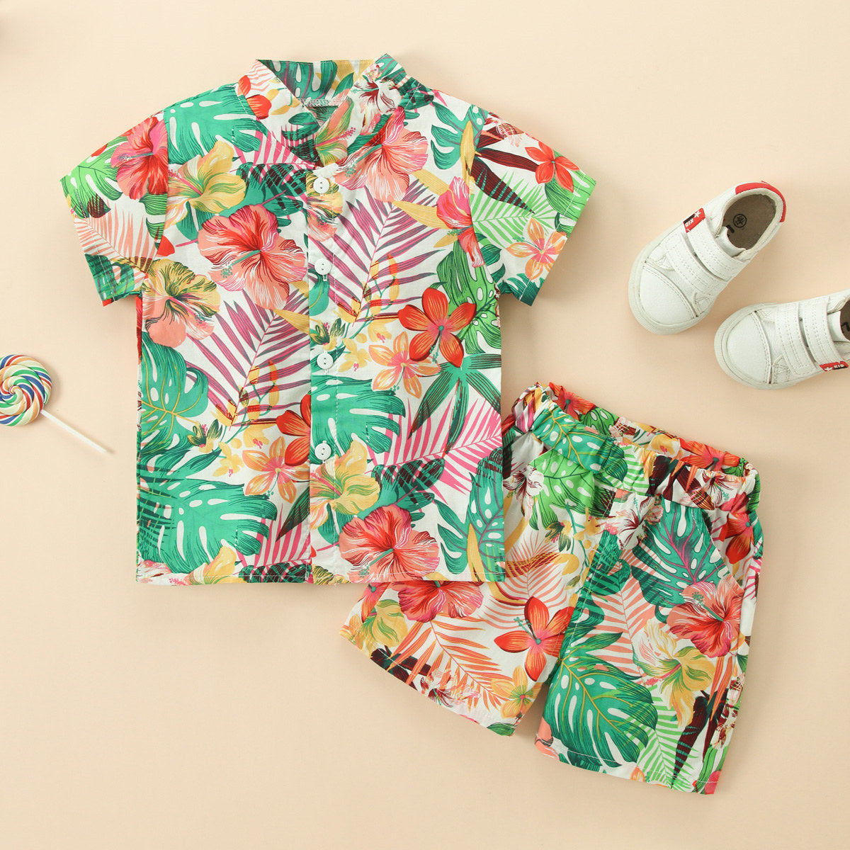 Toddler Boy Floral Pattern Short Sleeve Shirt & Shorts Wholesale