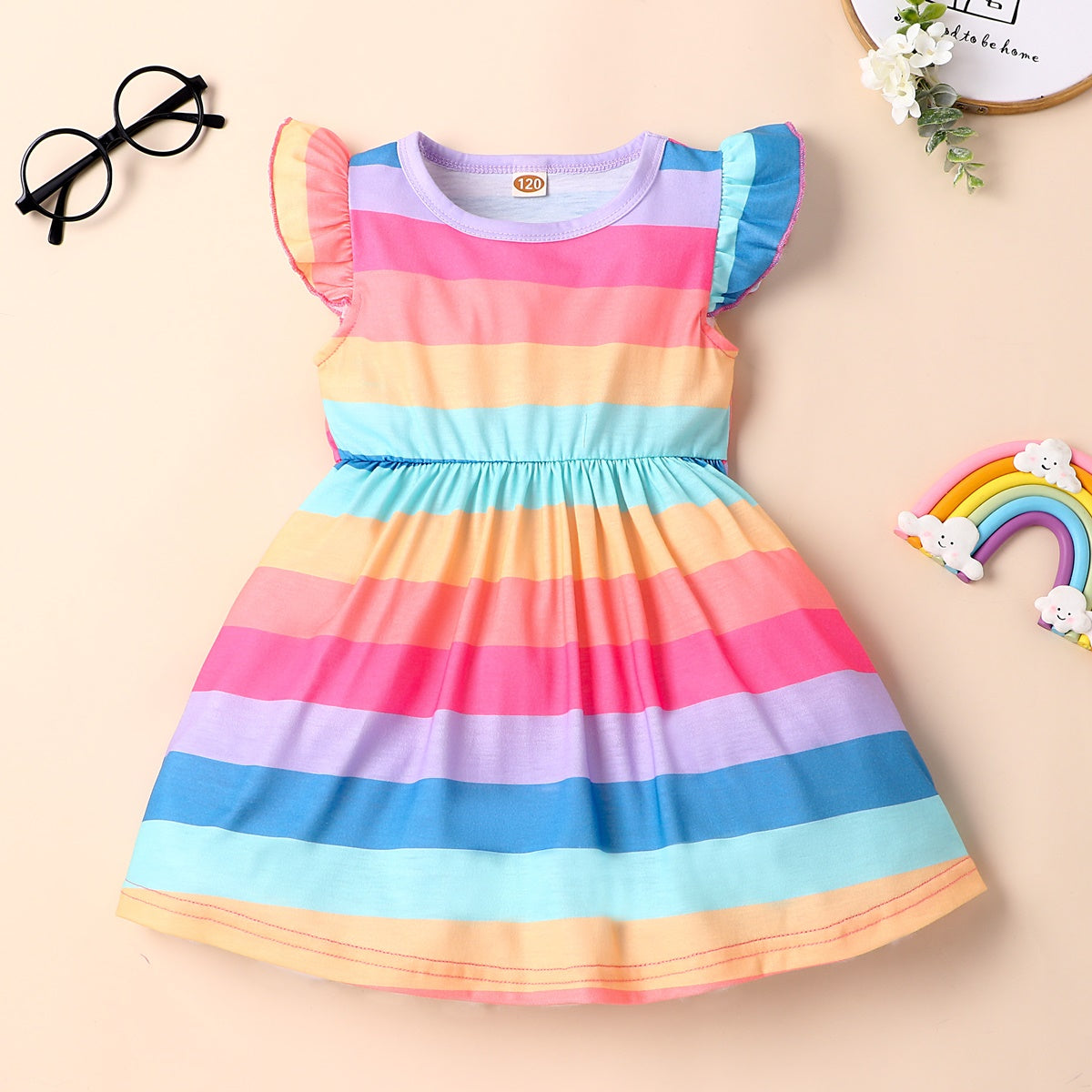 Toddler Girls Cotton Letter Heart-shaped Rainbow Top & Shorts Wholesale