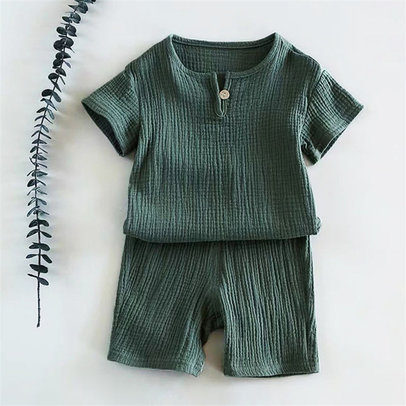 Toddler Boy Cotton Linen Solid Top & Shorts Wholesale