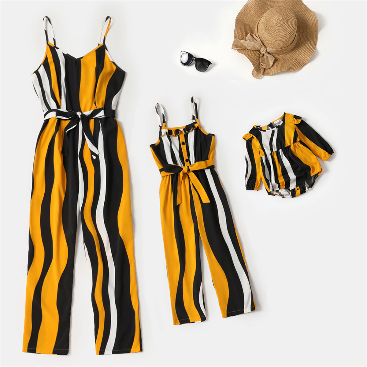 Stripe Print V-neck Sleeveless Jumpsuits for Mom and Me Wholesale