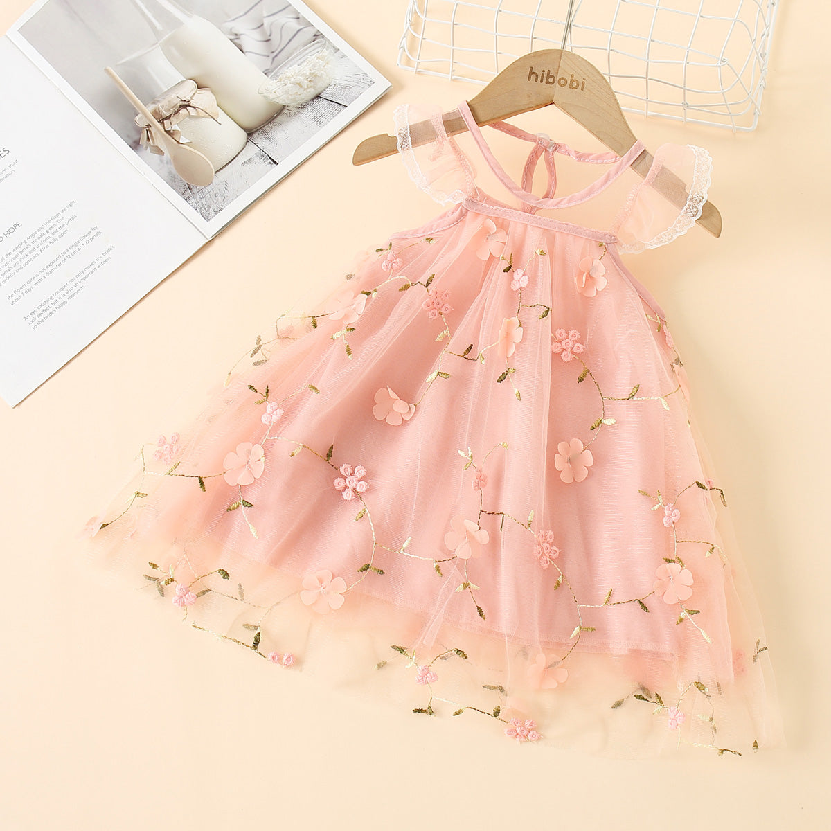 Toddler Girls Mesh Sweet Floral Embroidery Dress Wholesale