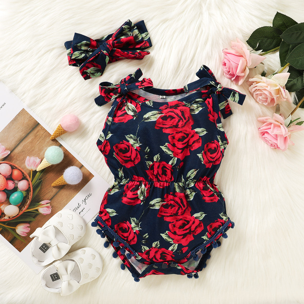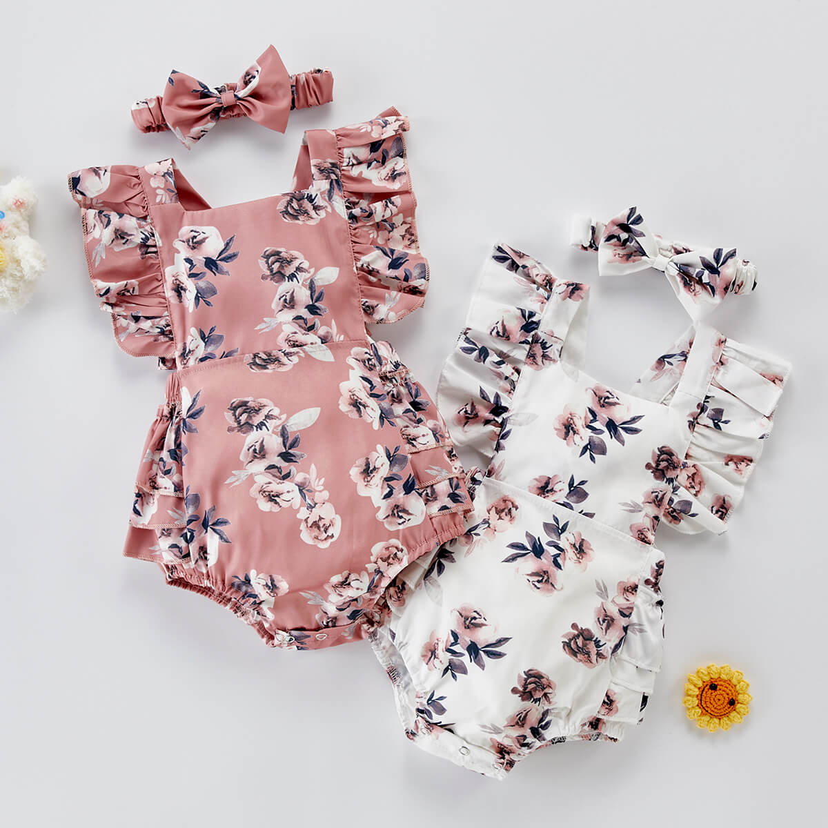 Baby Girl 2 Pieces Floral Pattern Ruffle-sleeveless Bodysuit & Headband Wholesale