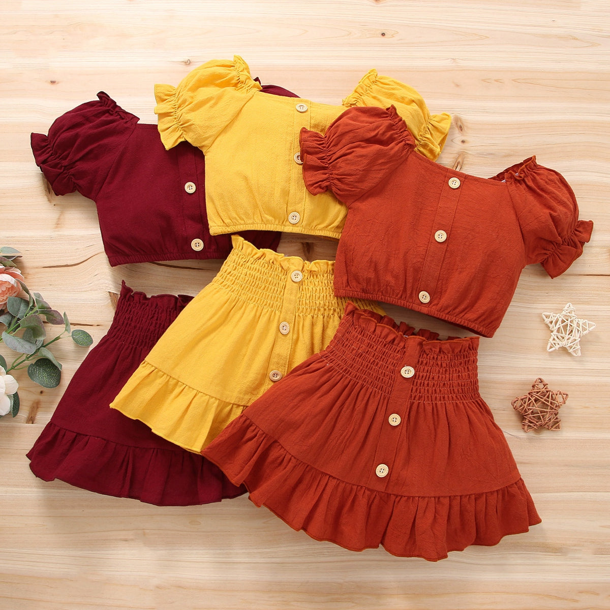 Baby Girl Beautiful Solid Puff sleeve Top And Skirt Wholesale