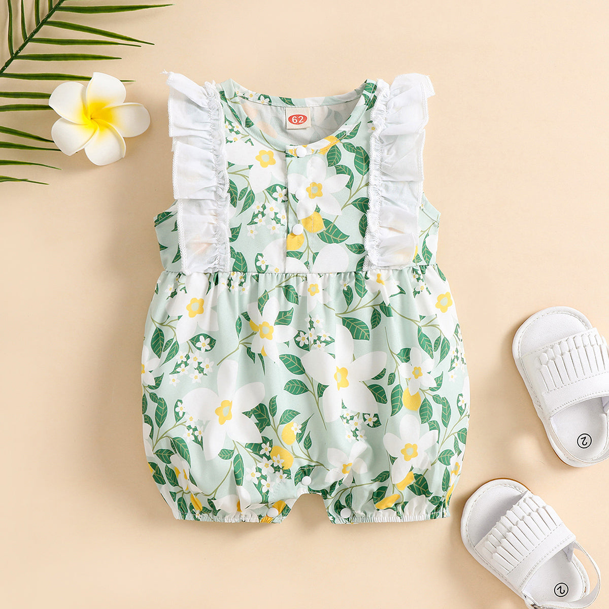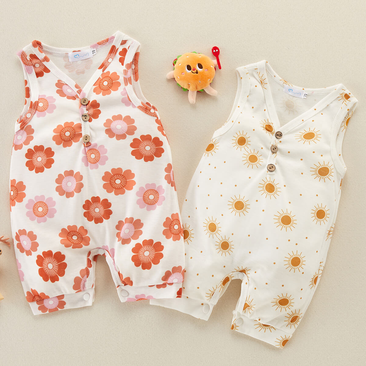 Baby Girl Floral Polka dot Pattern Sleeveless V-neck Romper Wholesale