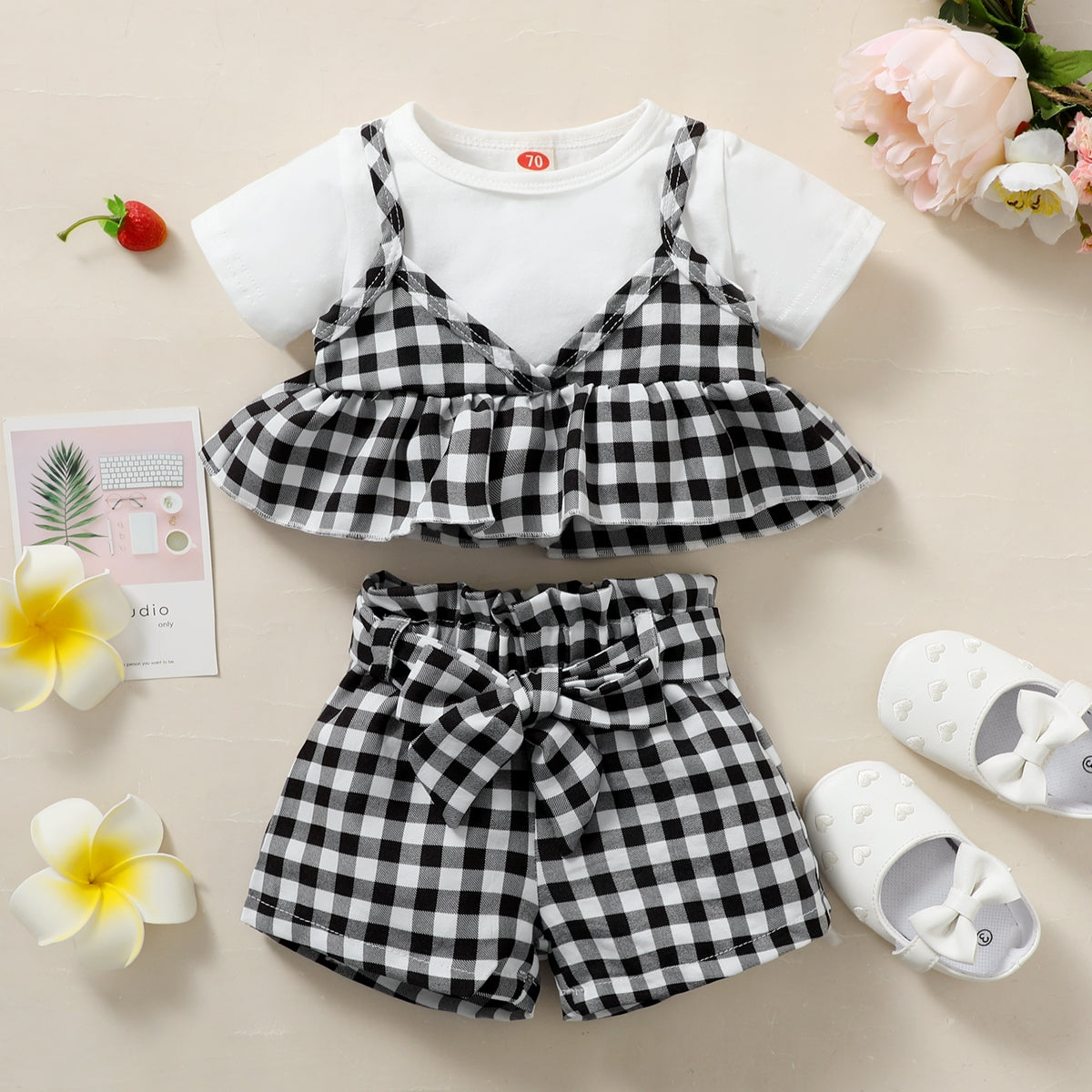 Baby Girl Beautiful Patchwork Top And Plaid Shorts Wholesale