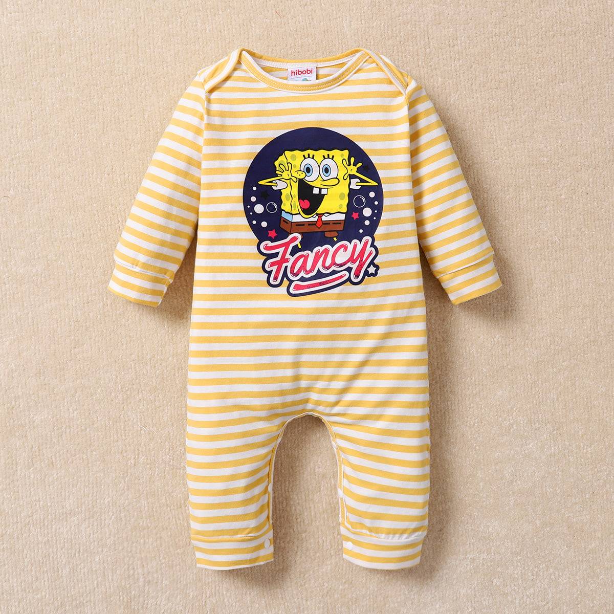 hibobi×Spongebob Baby Cute Print Stripe Long Sleeve Cotton Jumpsuit Wholesale