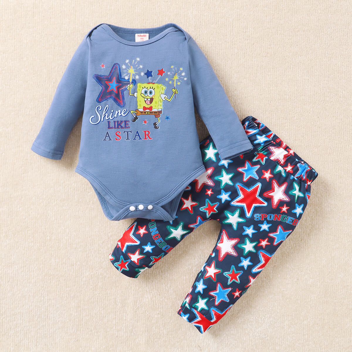 hibobi×Spongebob Baby Cute pentagram print pattern two-piece set Wholesale