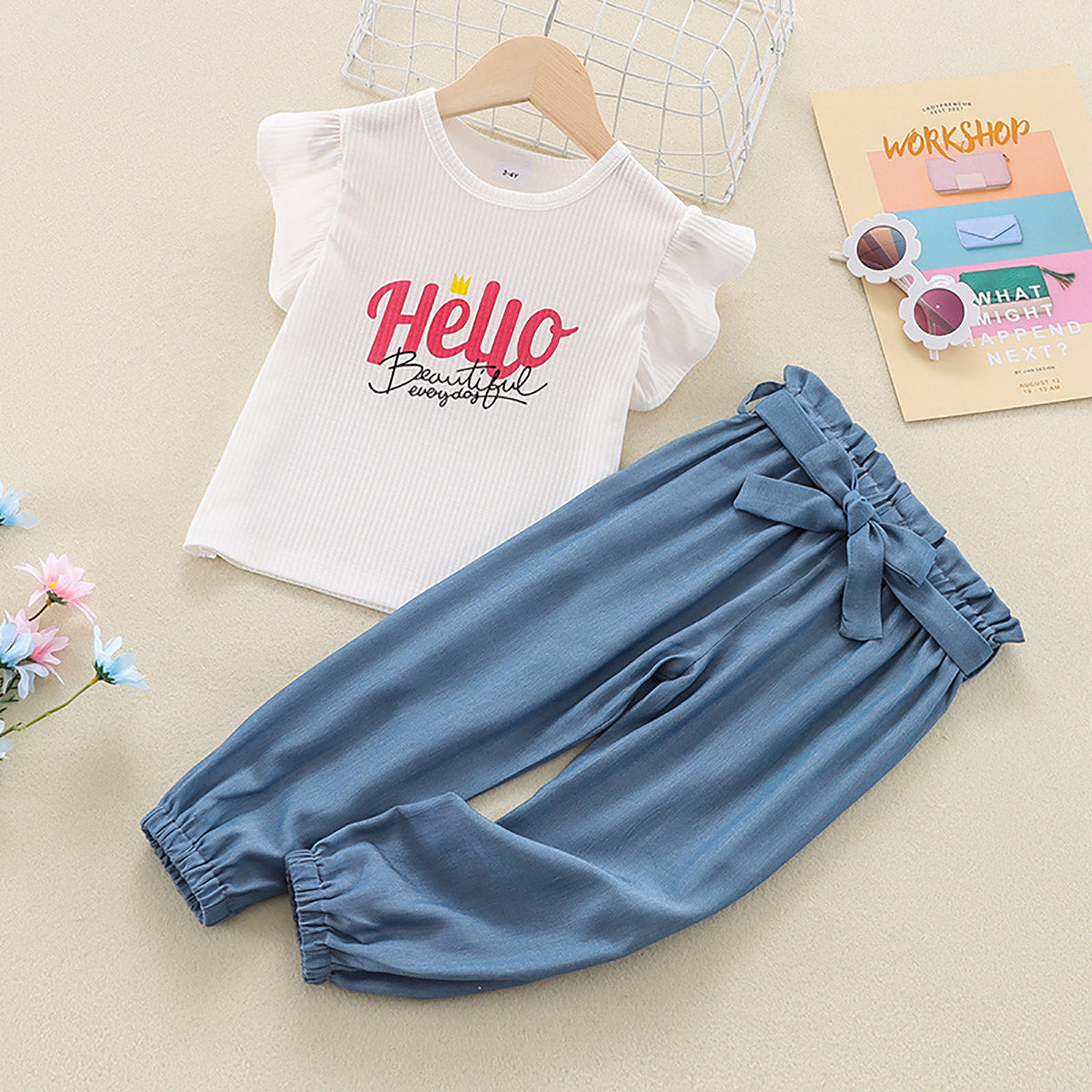 Toddler Girls Cotton Letter Color-block Top & Pants Suit Wholesale
