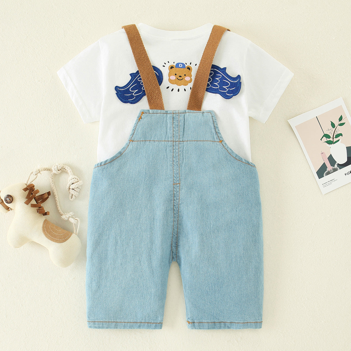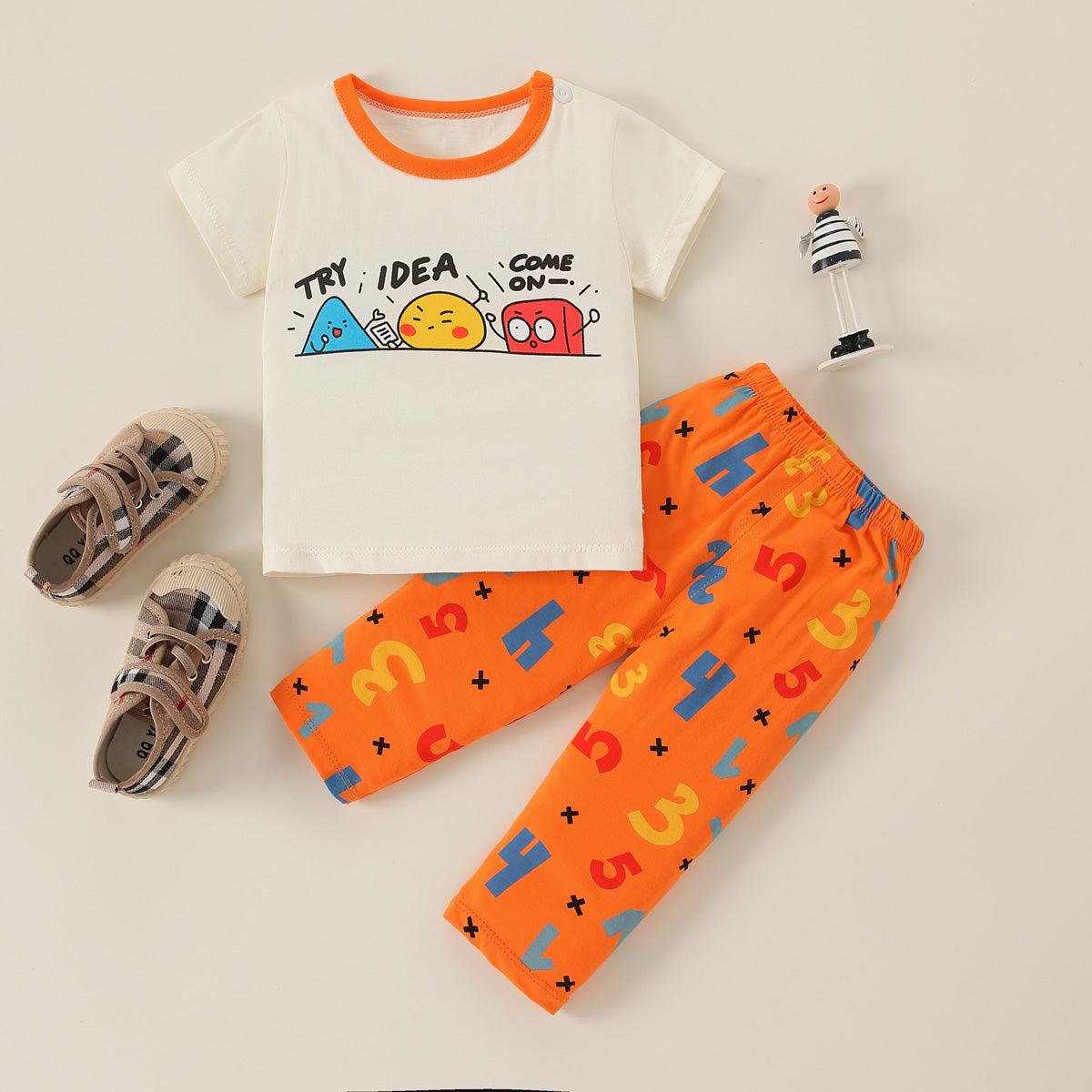 Toddler Boy Cartoon Pattern Short Sleeve T-shirt & Rompers Shorts Wholesale