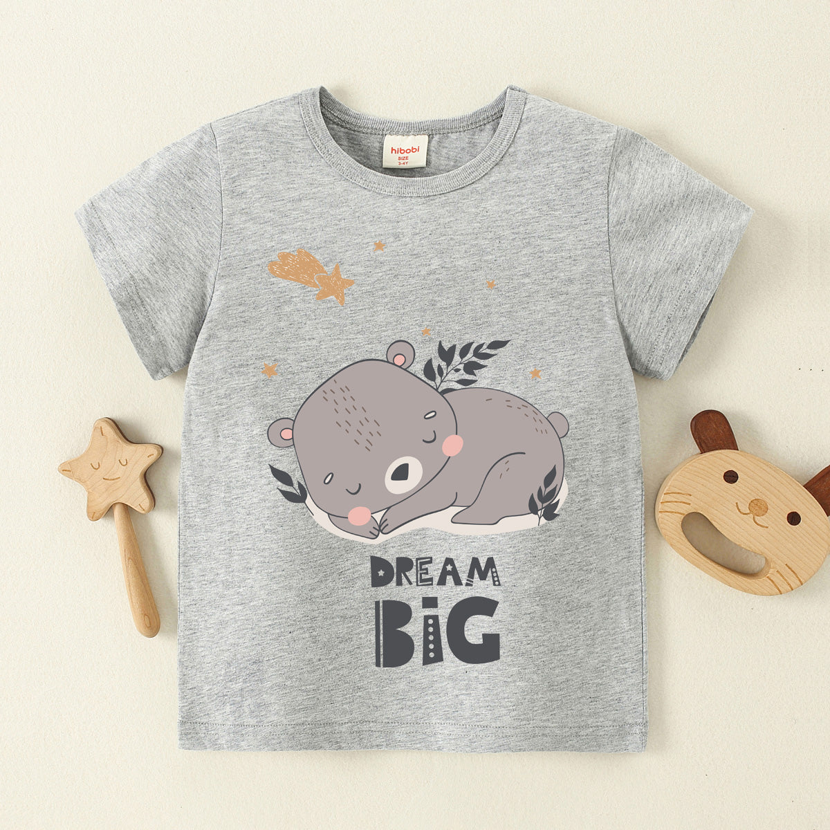 Toddler Boy Cotton Cartoon Letter Bear Printing Casual T-shirt Wholesale