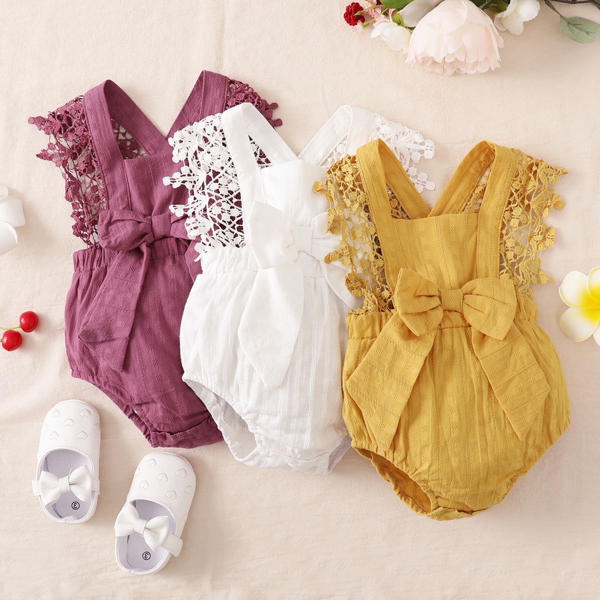 hibobi Baby Girl Vintage Lace Short Triangle Solid Colour Jumpsuit Wholesale