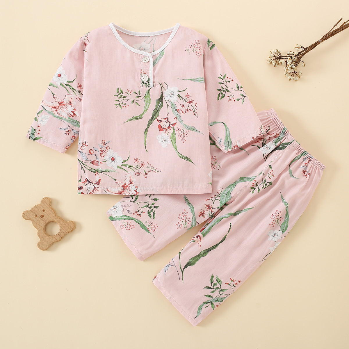 Toddler Girls Slash Neck Floral Solid Top & Pants Wholesale