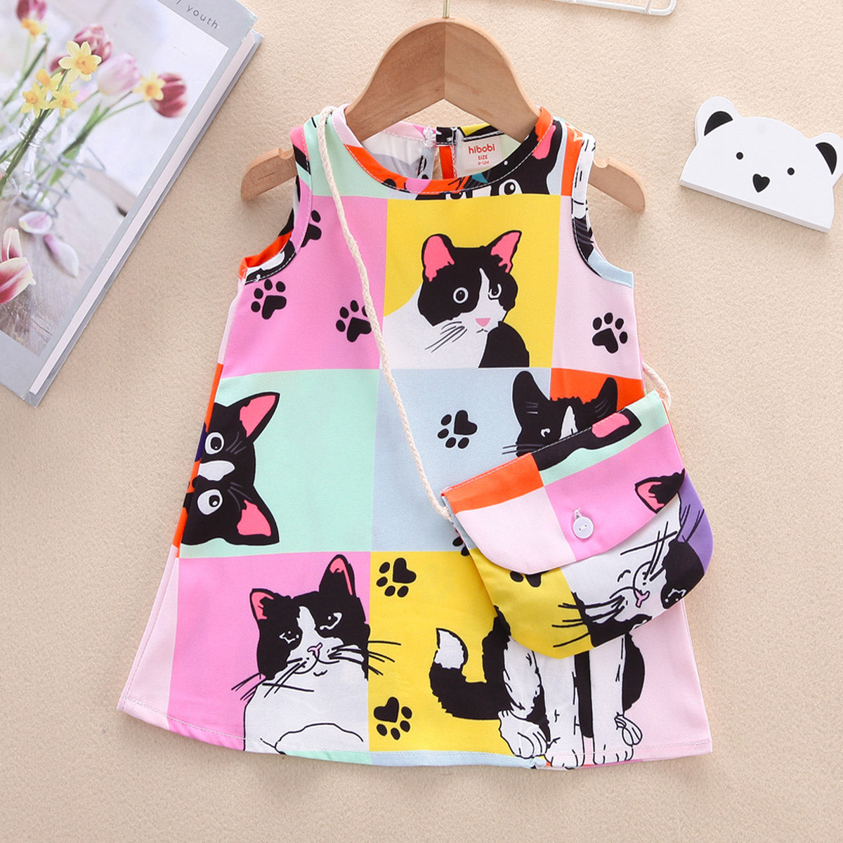 Toddler Girls V-neck Layered Skirt Cartoon Solid Hollow Out Dress Wholesale