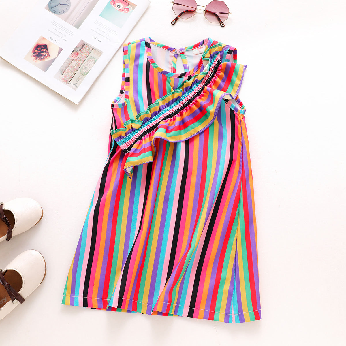 Toddler Girls Ruffle Color Stripes Dress Wholesale
