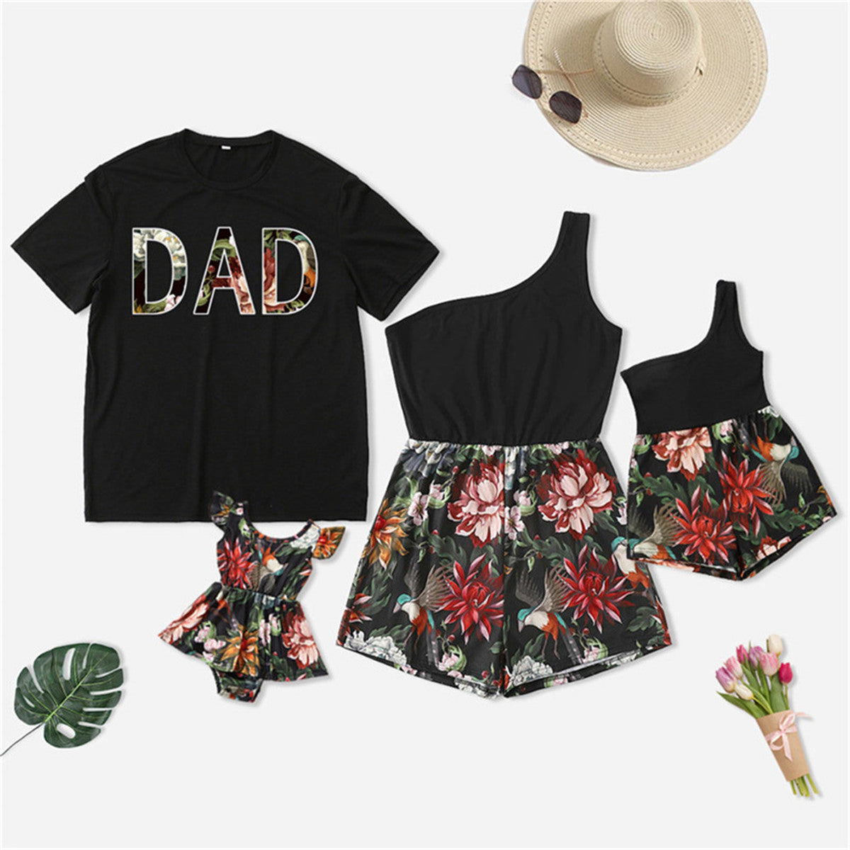 Family Matching Floral Print Sleeveless Dress and T-shirt Wholesale