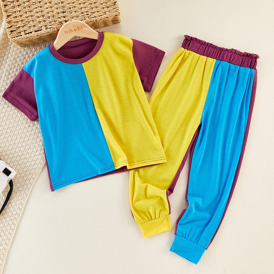 Kids Colour Block Pullover T-shirt & Pants Set Wholesale