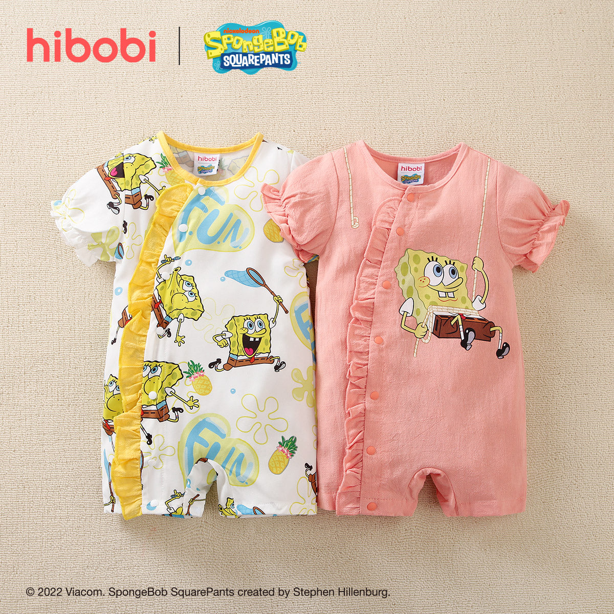 hibobi×Spongebob Baby Girl Cartoon Print Ruffle Short Sleeve Cotton Bodysuit Wholesale