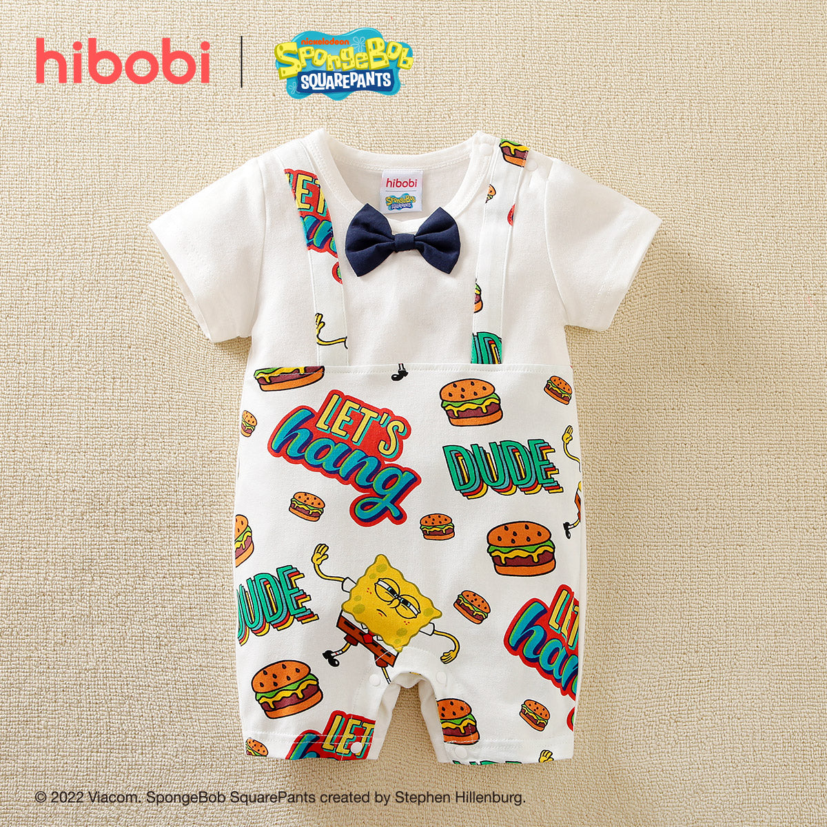 hibobi×Spongebob Baby Boy Cartoon Print Short Sleeve Bow Tie Cotton Bodysuit Wholesale