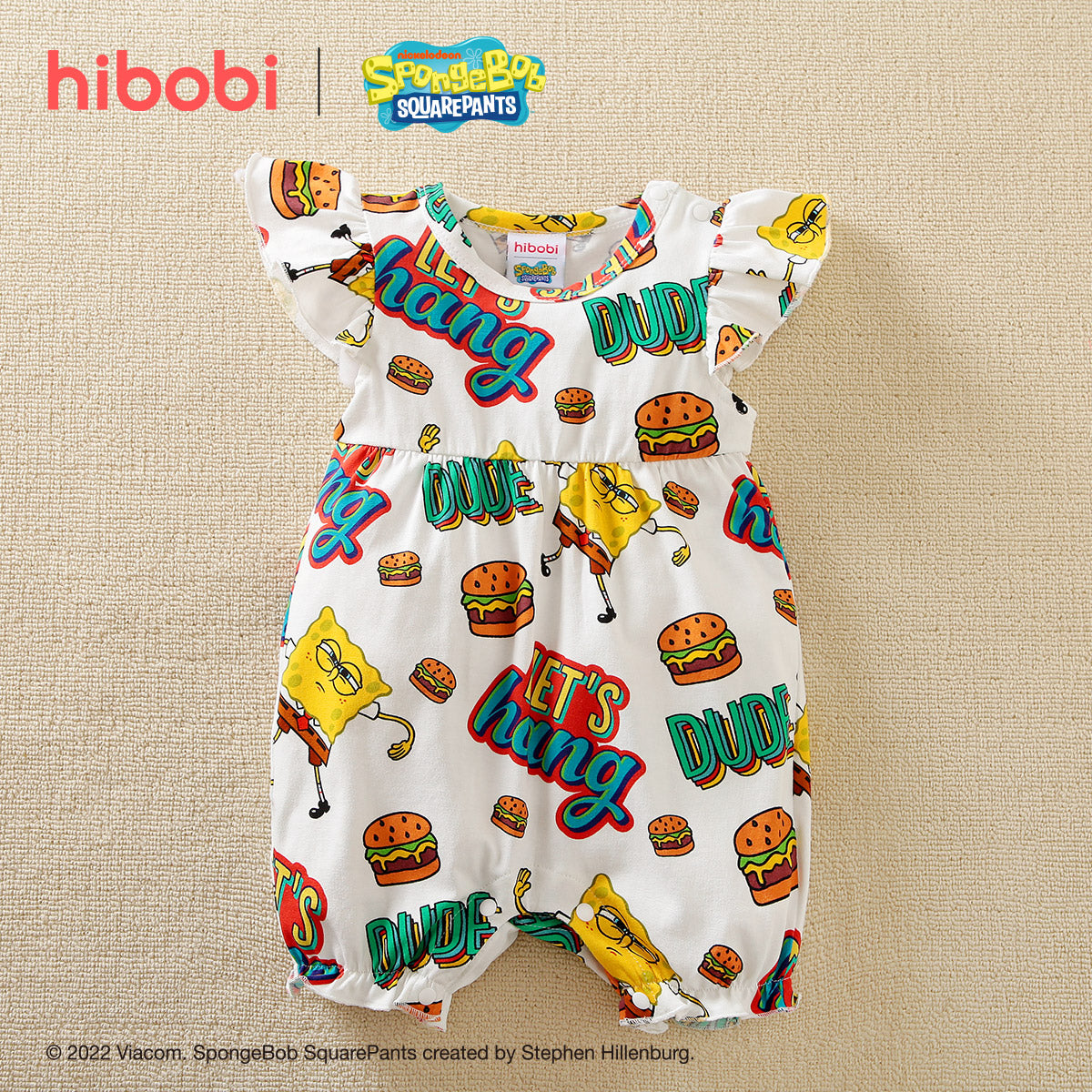 hibobi×Spongebob Baby Girl Cartoon Print Ruffle jumpsuit Wholesale