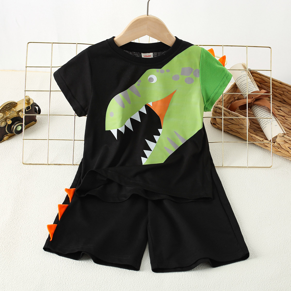 Kids Girls Summer Vacation Daily Letter Orange Print Suit Skirt Wholesale