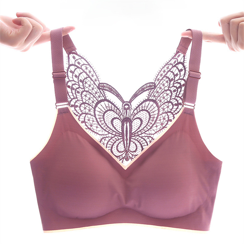 Women Lace Butterfly No Trace Breathable Ice Silk Sports Emulsion Bra Wholesale