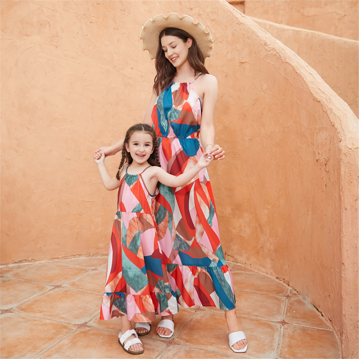 Sweet Color-block Print Sleeveless Dress for Mom and Me Wholesale