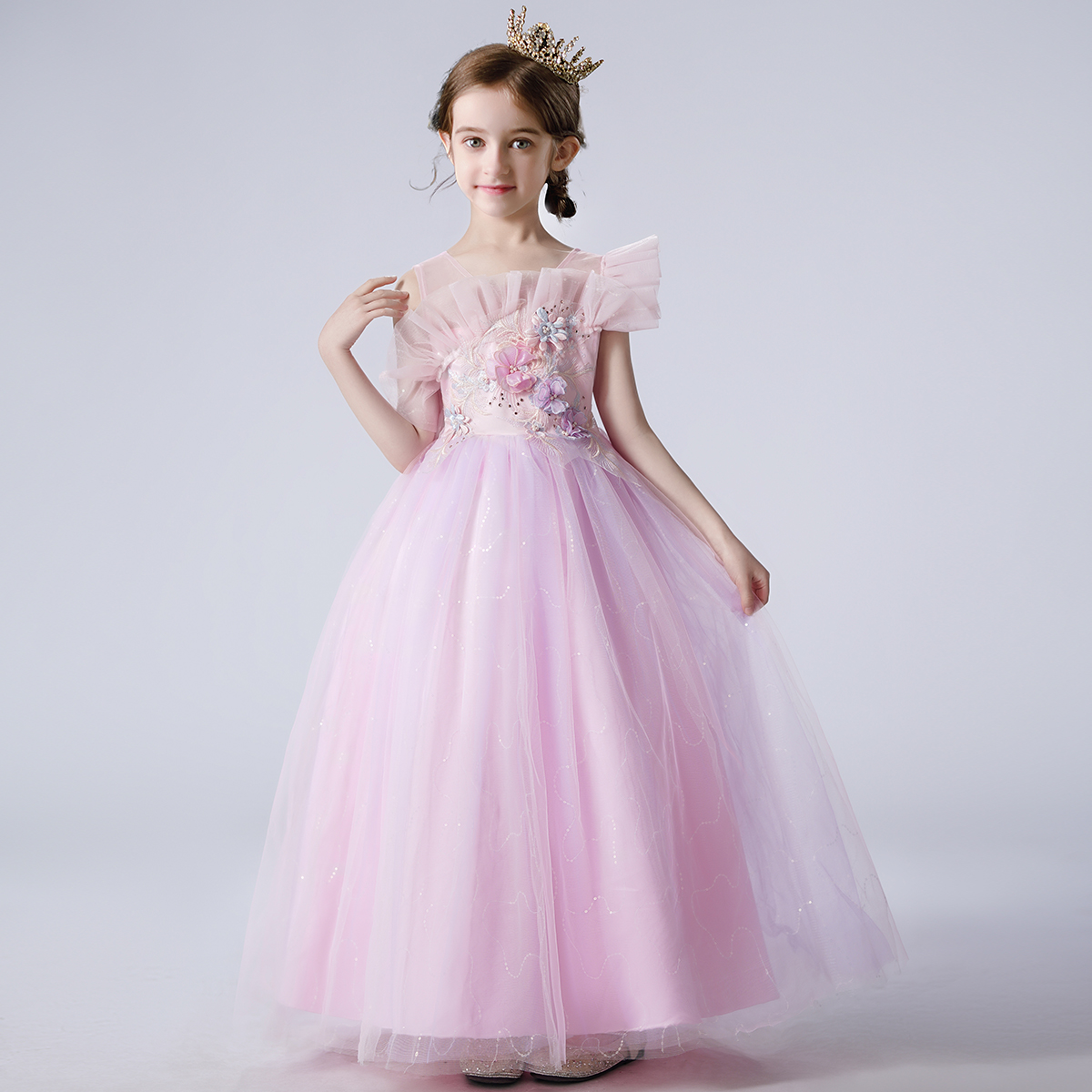 Kids Girls Bowknot Mesh Flowers Catwalk Princess Dress Wholesale