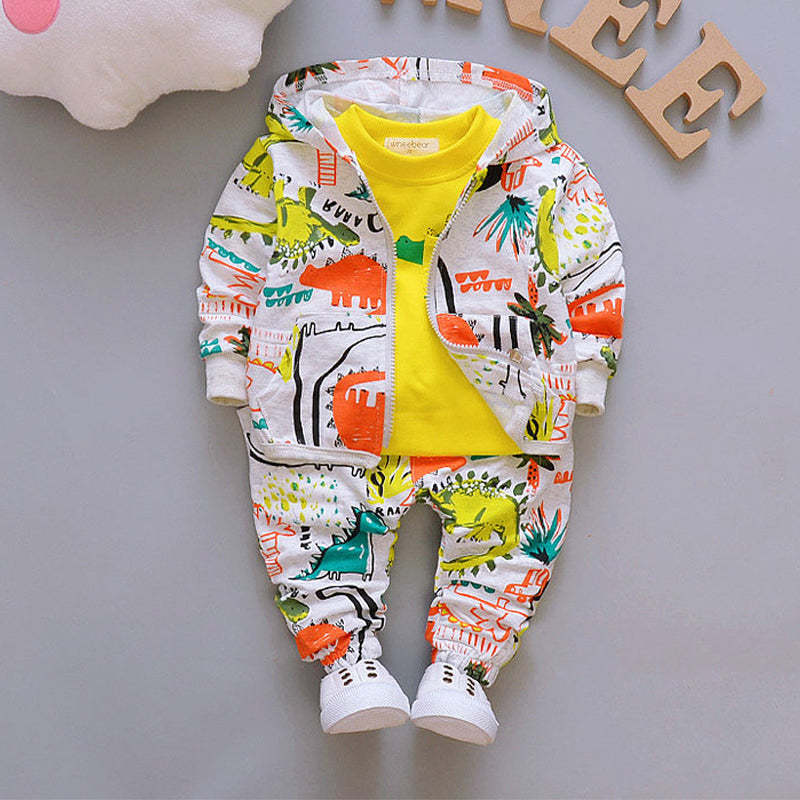 3-piece Floral Printed Hooded Coat & Sweatshirts & Pants for Toddler Boy Wholesale