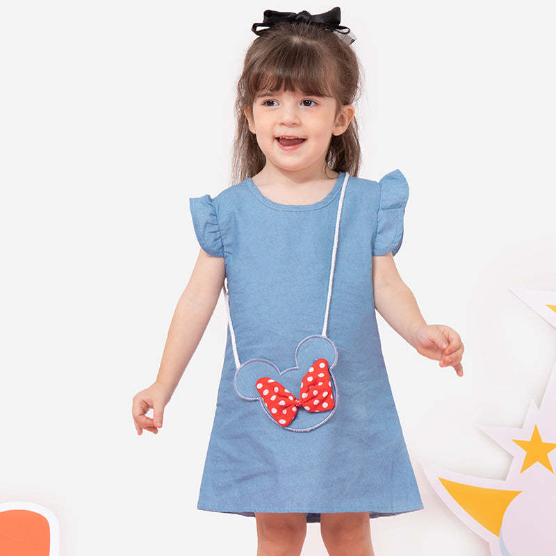 Toddler girl Cute Ruffled-sleeve Dress with Cartoon Polka Dot Bag Wholesale