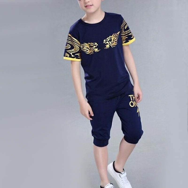 Boy Wing Print Geometric Pattern T-shirt & Capri Pants Wholesale