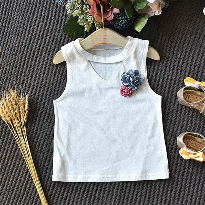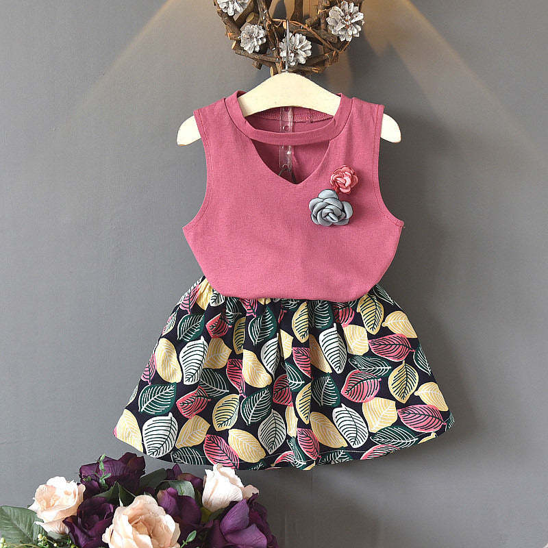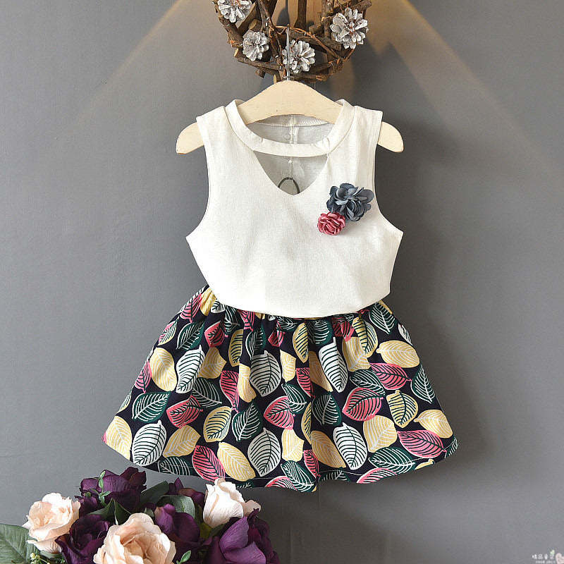 Toddler Girl Flower Decor Sleeveless Top & Leaf Print Shorts Wholesale