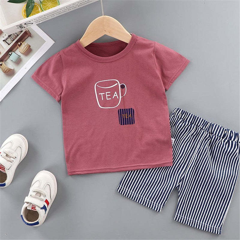 Toddler Boy Letter Print Pajama Top & Striped Shorts Wholesale