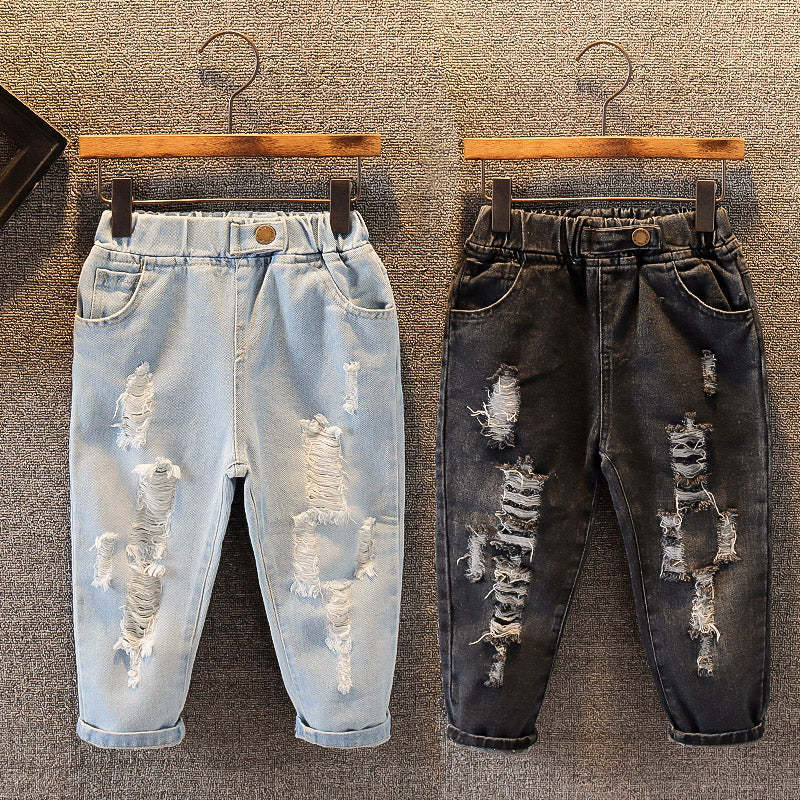 Toddler Boy Solid Color Ripped Jeans Wholesale