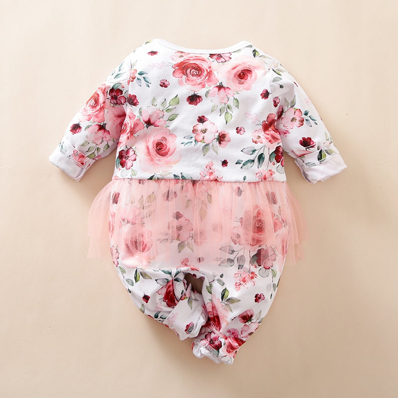 Baby Girl Sweet Floral Pattern Mesh Long Sleeve Jumpsuit Wholesale